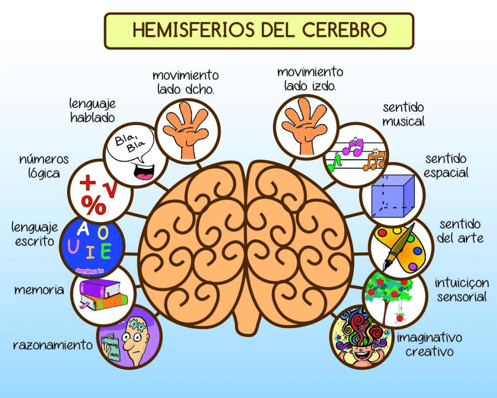 El cerebro humano está dividido en dos hemisferios, el derecho y el izquierdo, que se encargan de diferentes funciones. El hemisferio izquierdo maneja procesos relacionados con la aritmética, la lógica, el lenguaje, la planificación y la toma de decisiones. Por otro lado, el hemisferio derecho se ocupa de la geometría, las señales visuales, el razonamiento espacial y, en especial, las habilidades artísticas y musicales.